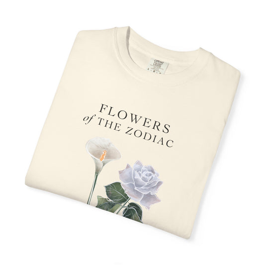Cancer Floral T-Shirt – Calla Lily & White Rose – Astrology T-Shirt