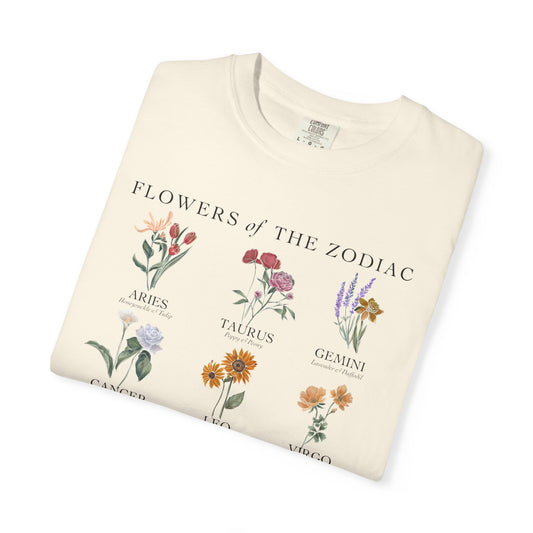 All Zodiac Signs & Birth Flowers T-Shirt – Astrology Floral Graphic Tee – Horoscope Gift for Her