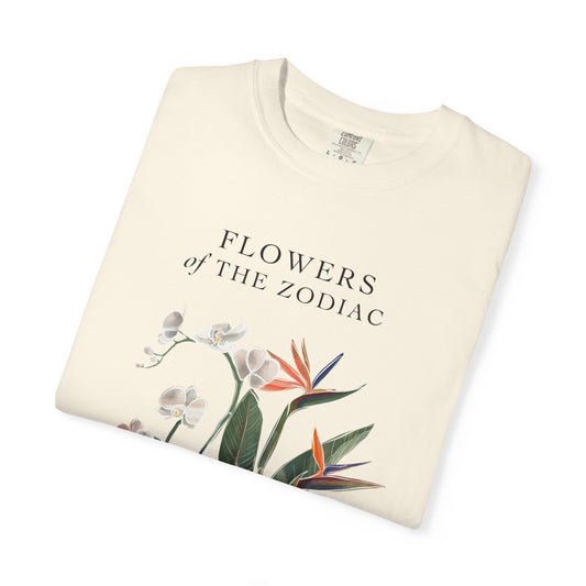 Aquarius Floral T-Shirt – Orchid & Bird of Paradise – Astrology T-Shirt