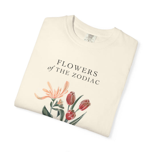 Aries Floral T-Shirt – Tulip and Honeysuckle – Astrology T-Shirt