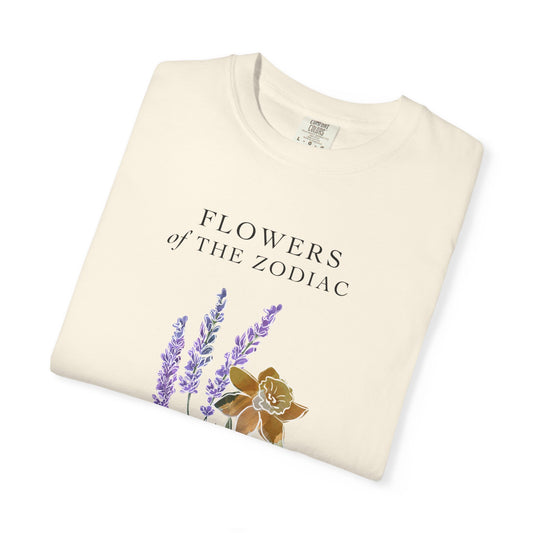 Gemini Floral T-Shirt – Lavender & Daffodil – Astrology T-Shirt